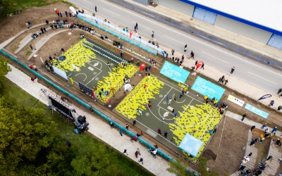 Another exceptional new basketball court is under the roof, actually under the sky in Kranj. We also equipped the playground with a top-quality sports surface.